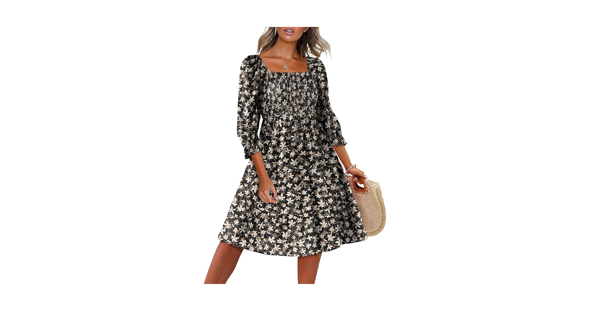 50% off CARACILIA 3/4 Sleeve Square Neck Dresses