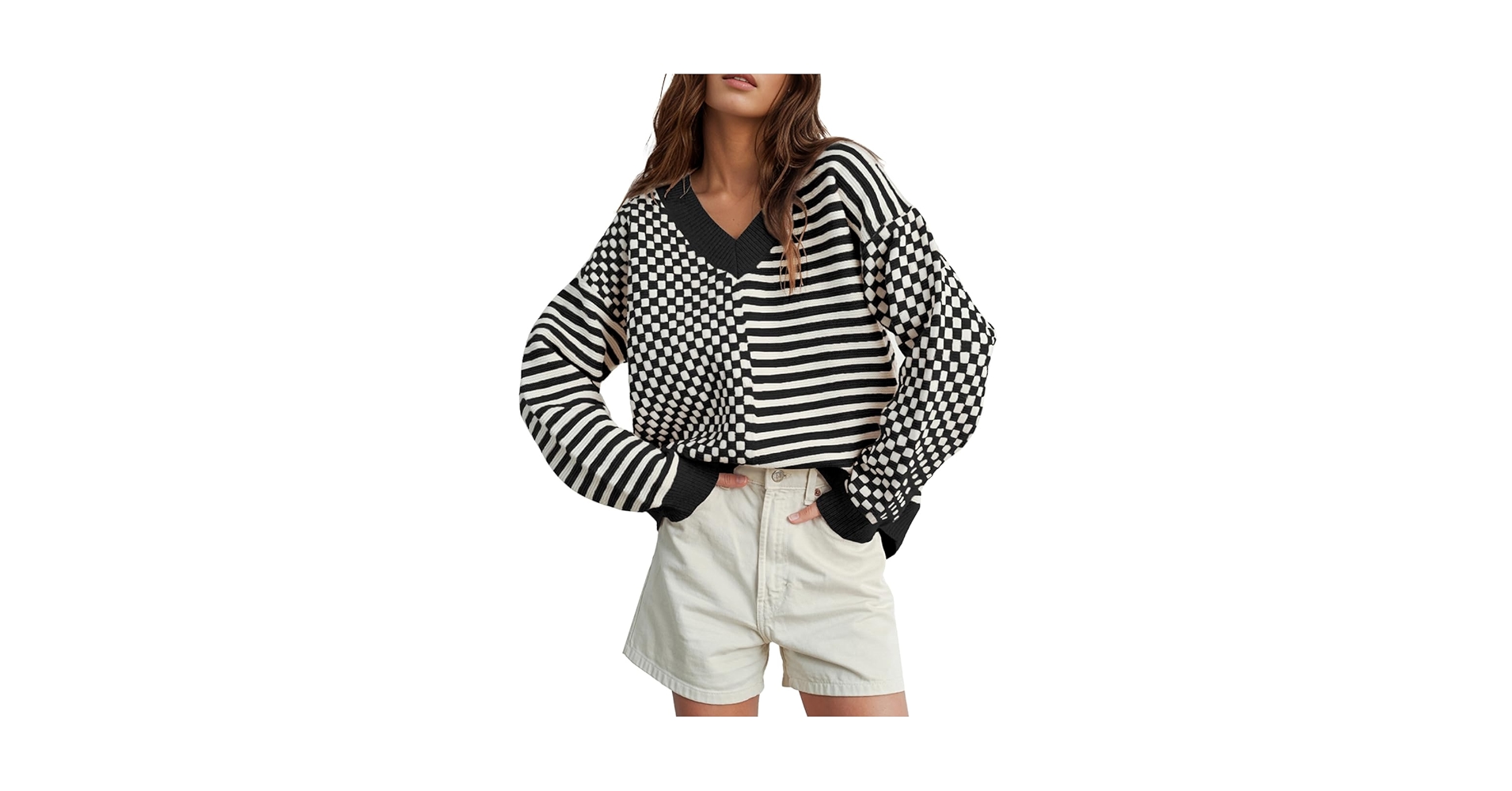 45% off UNCLECAT Womens Striped Checkered Sweater