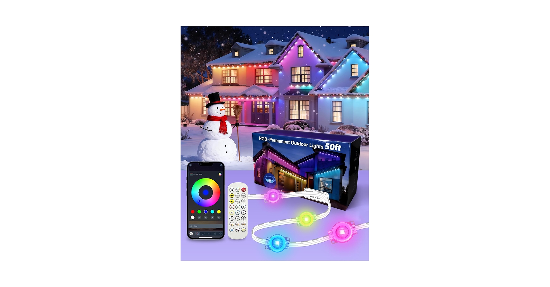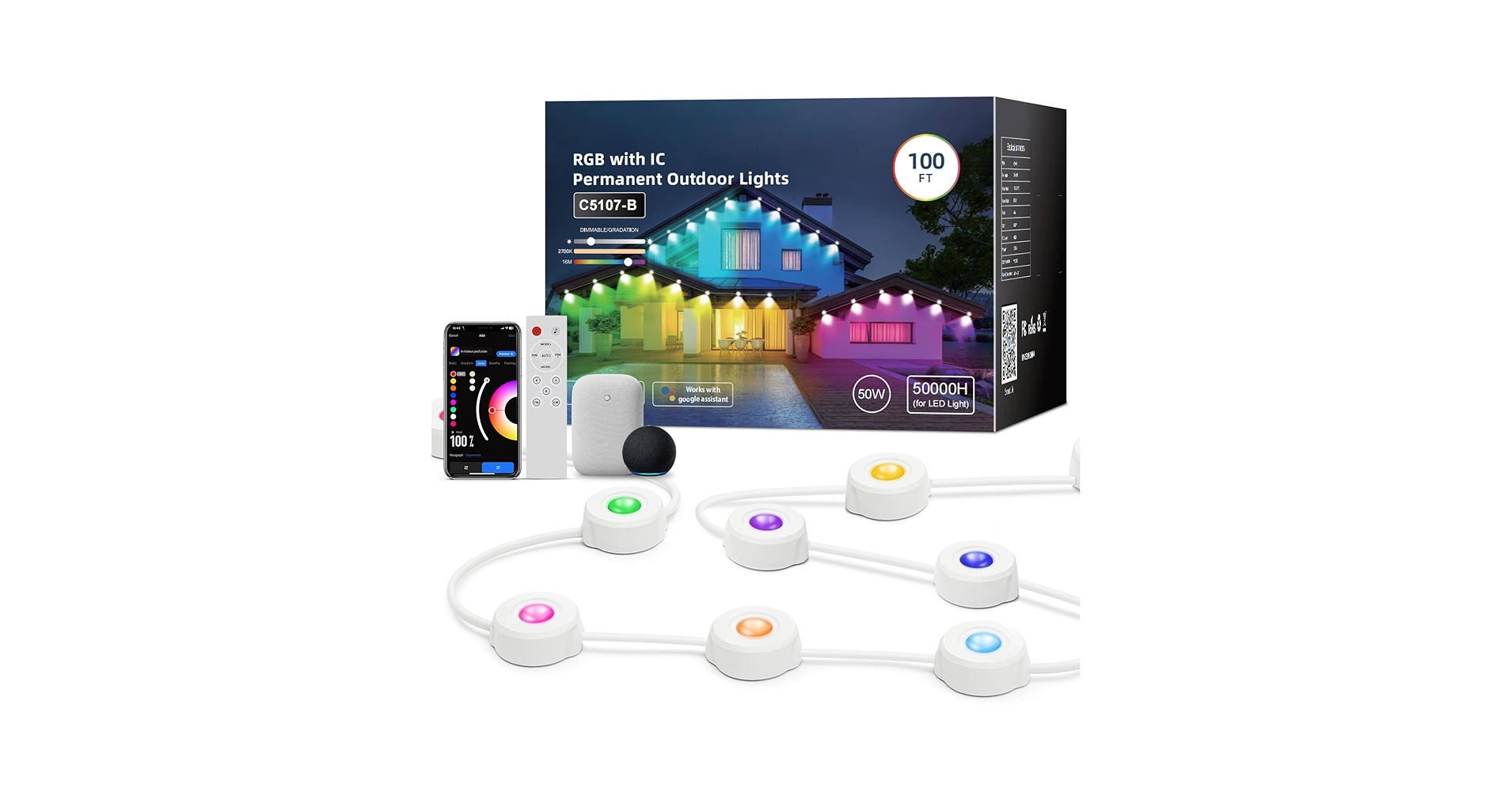 50% off AHAWILL Permanent Outdoor RGB Lights 100ft