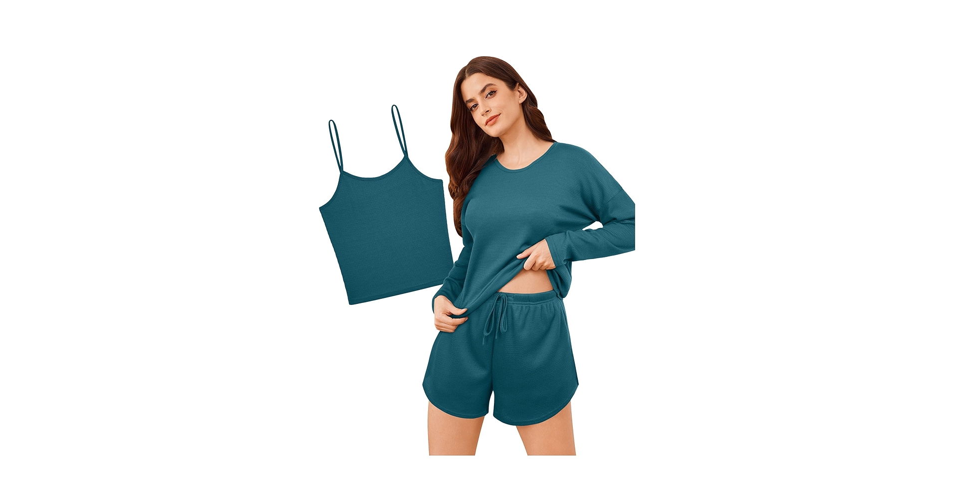53% off EKOUAER 3 Piece Waffle Knit Lounge Set